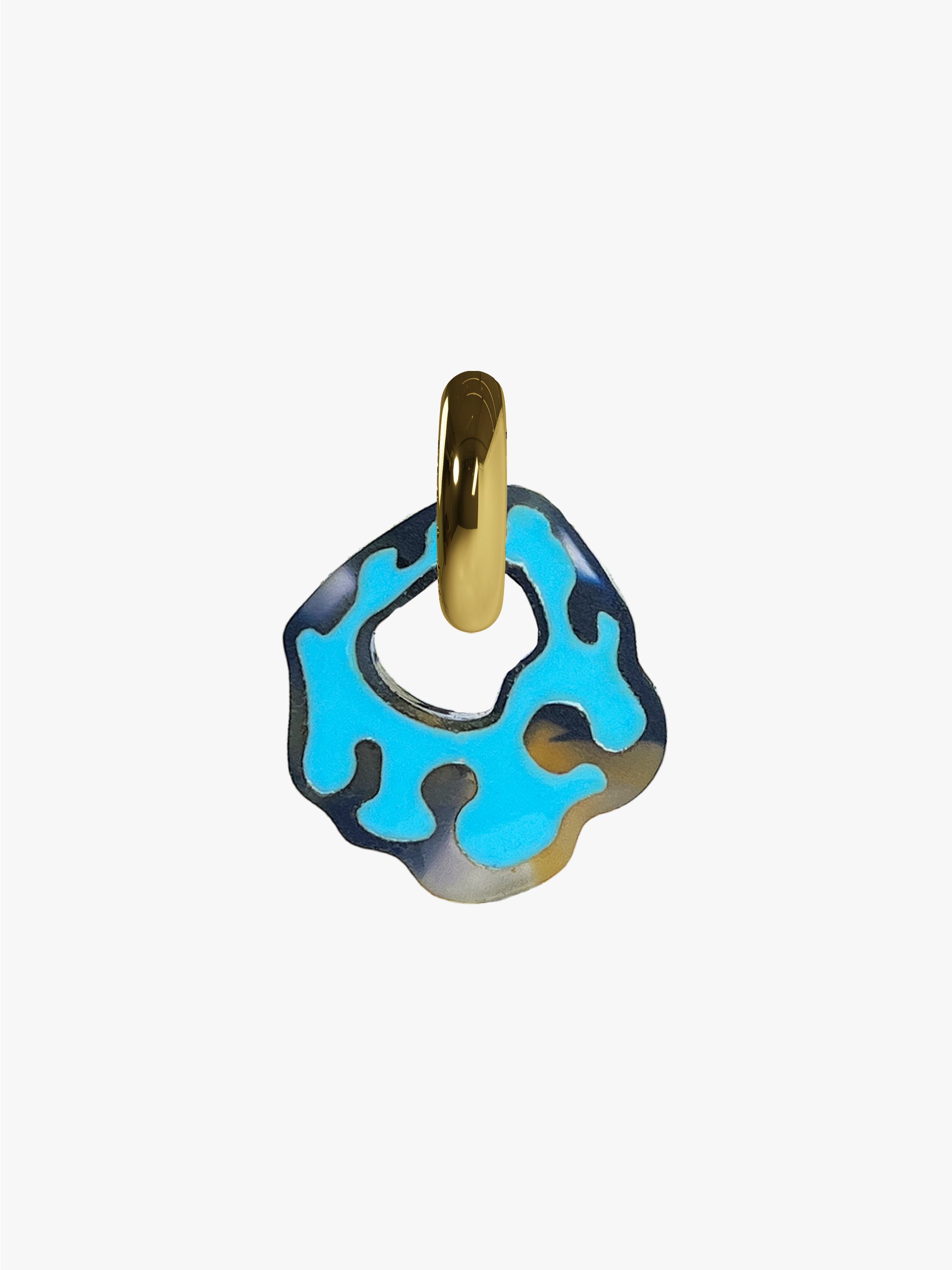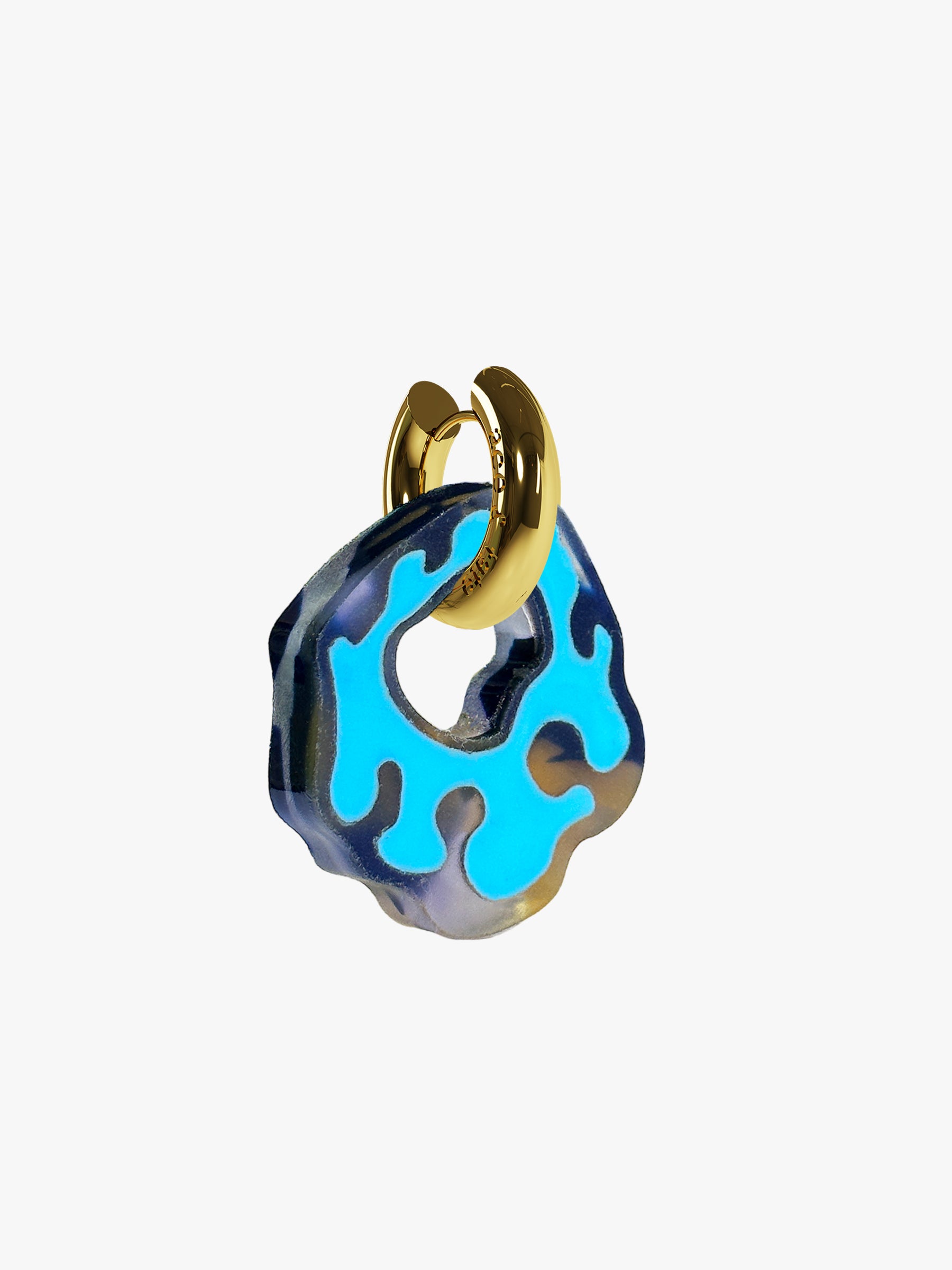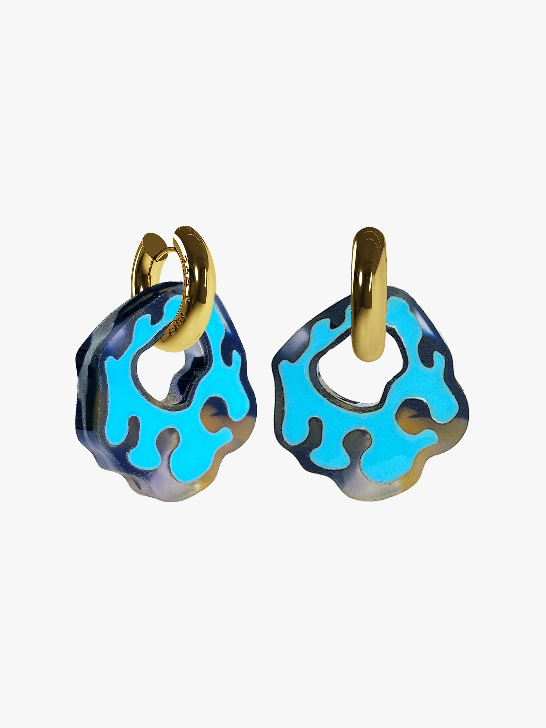 Please note: The price is per pair Hoop: High grade Stainless steel (gold), allergy friendly. Amoeba: Engraved Acetate, resin filled. Weight: 12 grams (wear all day) Size: Ear hoop 20 mm, total with Amoeba 45 mm. Designed and handmade in the Jordaan, Amsterdam