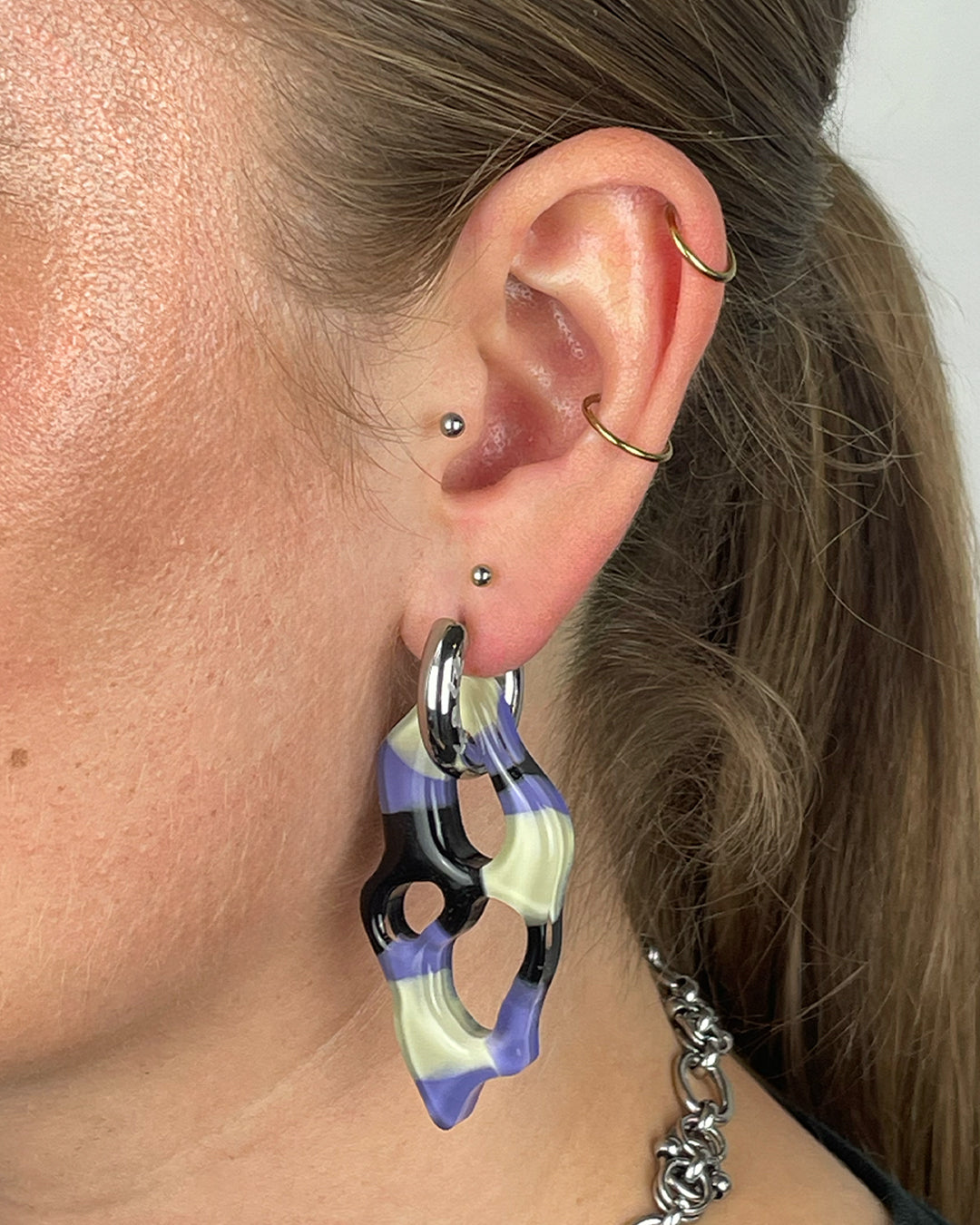 Jewellery: Hoops are made of water proof durable stainless steel. Amoebas are made of resin