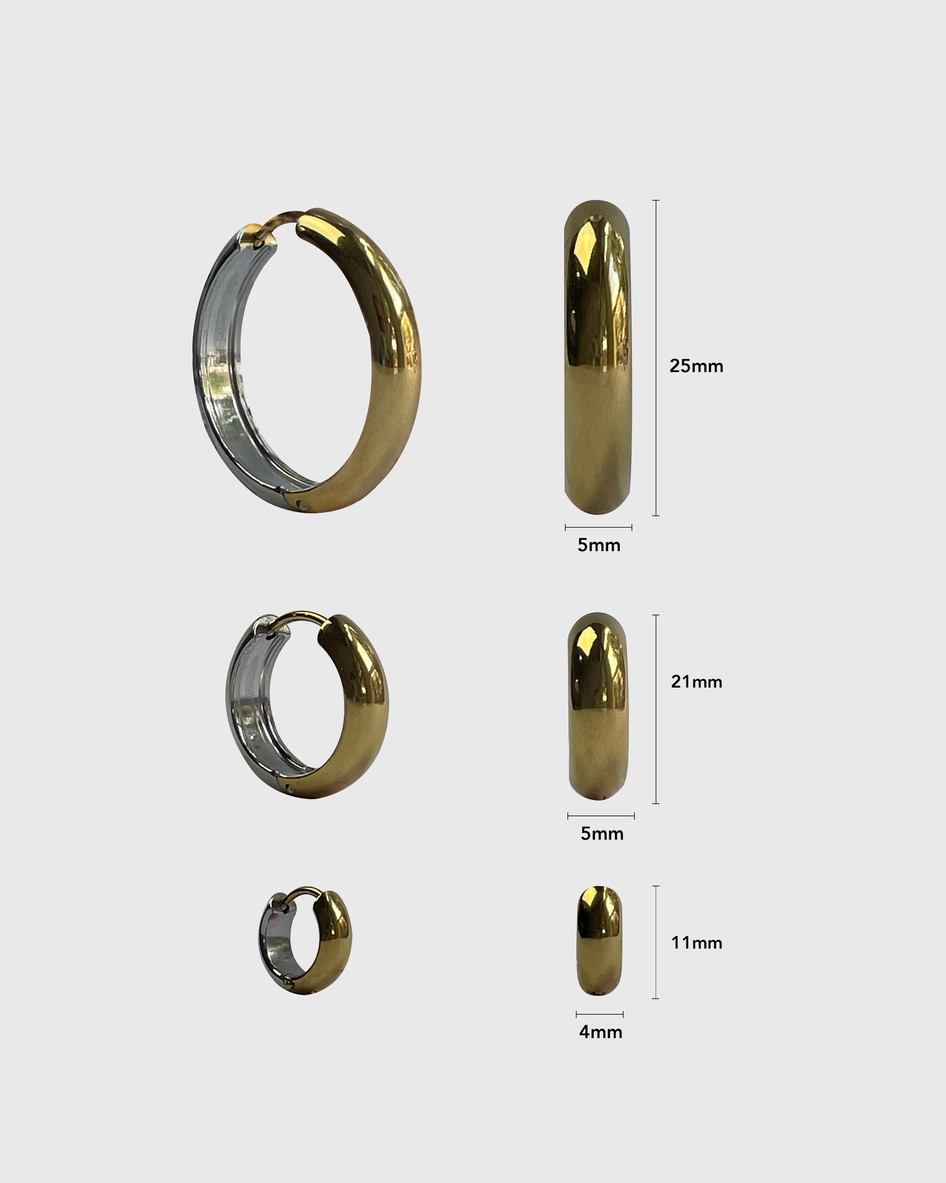 Discover the Rev earrings, a playful twist on style with their gold and silver combination. Wear them on either side and switch up your look effortlessly by simply twisting or turning. Available in three sizes, these earrings let you mix and match to suit your mood and outfit with ease.