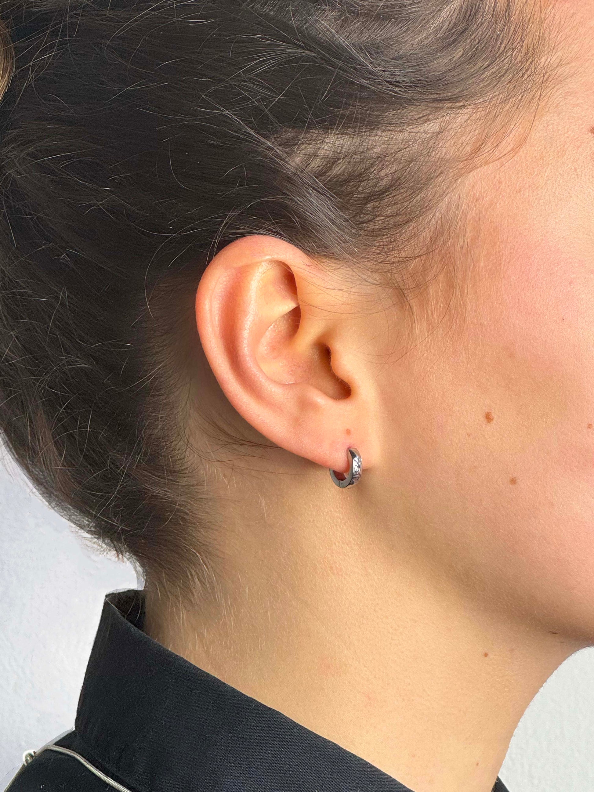 Sparkle in style with our small mini huggy, named Tiny. This adorable accessory cuddles your ear and gives you a cute shine. It has the Felt warped logo embossed on the hoop.